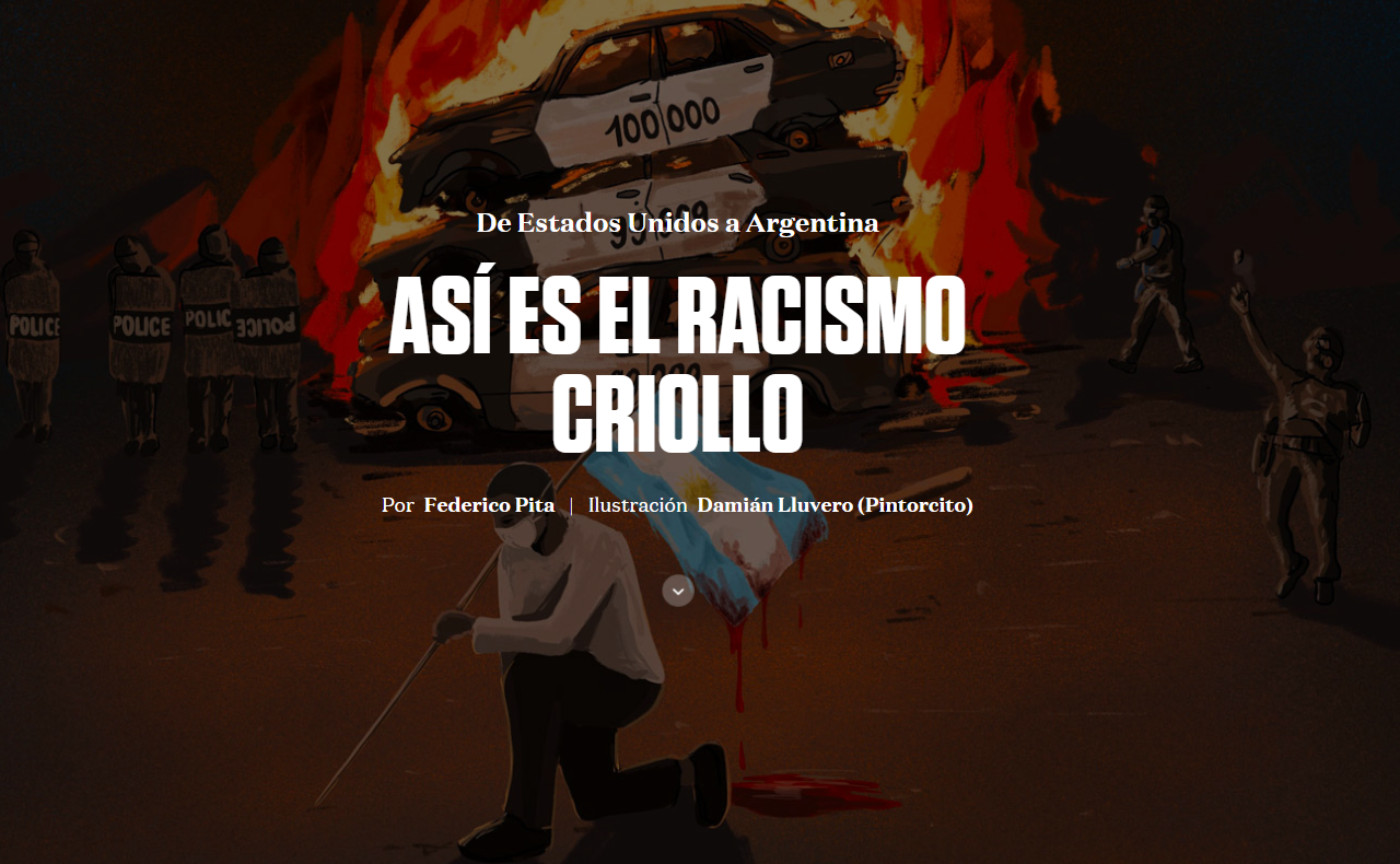 En Minneapolis, Minnesota, el agente blanco Derek Chauvin aprieta con su rodilla el cuello de George Floyd durante ocho minutos. Aprieta hasta matarlo: otro asesinato de un afroestadounidense a manos de un policía en los Estados Unidos. Una multitud multiétnica toma las calles y en pocos días las movilizaciones se extienden a 140 ciudades. Explotan las redes sociales mundiales y Argentina no es la excepción. El periodismo argentino corre a hacer sus análisis. El periodismo hegemónico pone el énfasis en los disturbios, en la destrucción de la propiedad privada y justifica el accionar represivo a la vez que criminaliza la protesta. El periodismo progresista empatiza con el pueblo en las calles y denuncia el racismo, como si esta ideología fuera exclusiva de Norteamérica, Europa, y a lo sumo de Brasil, pero no de Argentina.